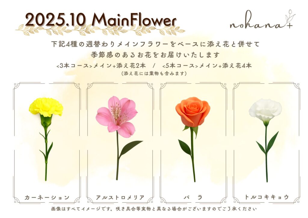 秋らしい彩りの4種の週替わりメインフラワーをベースに